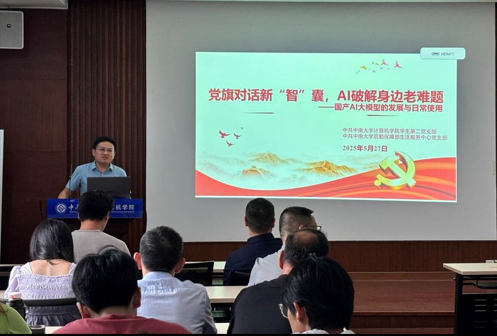 为加强学习习近平总书记关于加快发展新质生产力的重要指示精神,推动国产人工智能技术走进校园、服务师生,2025年5月27日下午,球王会员工第二党支部与后勤保障部生活服务中心党支部在计算机楼313教室联合开展了“党旗对话新‘智’囊,AI破解身边老难题——国产AI大模型的发展与日常使用”主题党日活动。