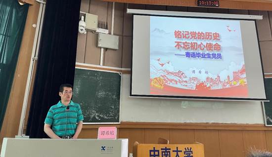 随后,谭希培教授以“铭记党的历史,不忘初心使命”为主题,为毕业生党员上了一堂生动立体的党课。谭老师带领同学们回顾了百年党史,激励同学们通过学党史,明理增信,要从我党百年历史中汲取奋进力量,延续党的优良传统和精神血脉,在今后的学习、生活、工作中开拓创新、积极进取,挥洒青春汗水,创造精彩的人生。谭老师还告诫青年党员同学,要珍惜时光,不懈拼搏奋斗,努力成为球王会官网优秀员工,成为国家社会发展的栋梁之才。