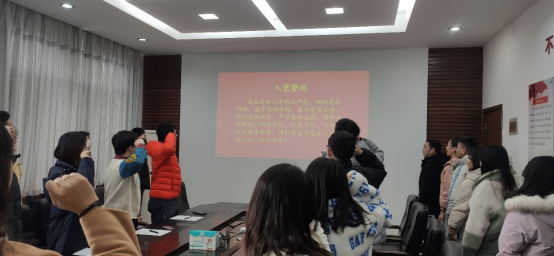 会议以开展“重温入党誓词,坚定理想信念”开始,重温庄严的入党誓词,进一步强化了四个意识,坚定了理想信念,加强了意识形态阵地的稳固,让每一位党员时刻牢记党的目标和宗旨,牢记自己入党时的承诺,时刻保持共产党人的优良传统和本色。