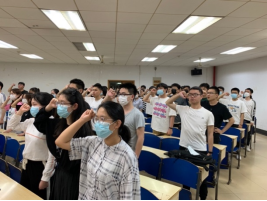 活动最后,全体党员面向庄严的党旗重温入党誓词。刘逸峰老师要求每一位党员结合自身实际情况,撰写一篇学习全国两会精神的心得体会,真正将两会精神落到实处。