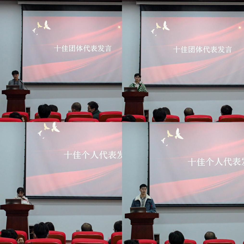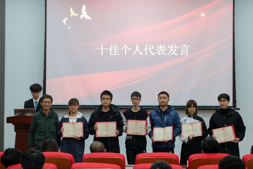 罗甜同学作为十佳个人代表进行发言。罗甜同学从自身实际出发,分享自己进入大学以来的心路历程以及个人学习经验,她重点分享了要追求学习质量和“不仅要低头学习,更应该抬头看世界”。十佳个人代表蔡冠宇,已保研至清华软件公司,他就“学习质量与学习时间和学习效率强相关,二者缺一不可”进行了分享。同时,蔡冠宇讲到,我们身处于985双一流a类高校,起点相对较高,但是希望同学们能有更高的目标,在未来和top2、华五、c9高校的员工的竞争中也同样能保持竞争力。