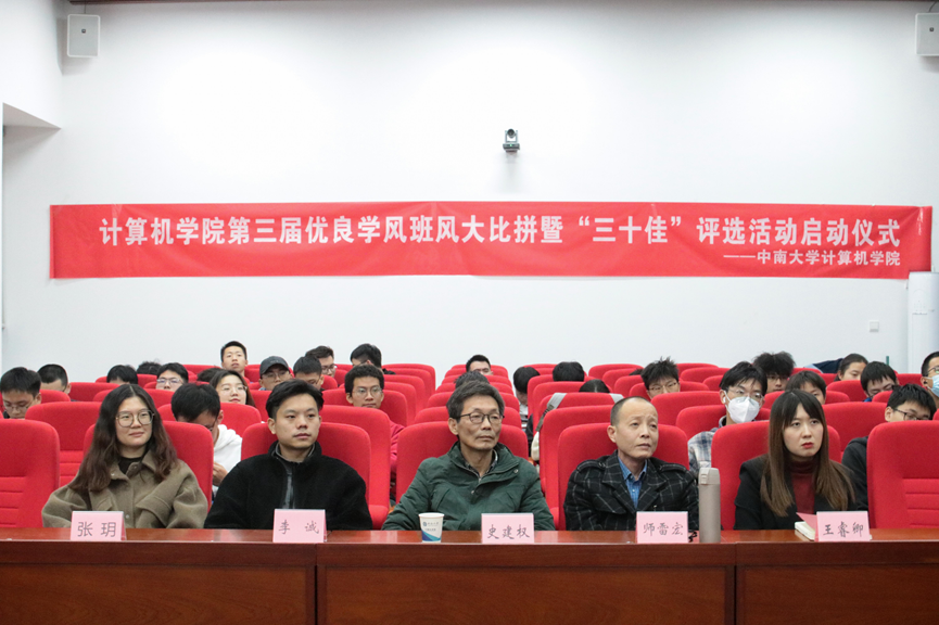 2021年11月27日19时30分,为学习贯彻党的十九届六中全会精神,积极推进优良学风建设,球王会第三届学风班风大比拼暨三十佳评比活动启动仪式在新校区信息楼多媒体智慧教室举行。公司党委副书记史建权老师,学工办主任师雷宏老师,辅导员李诚老师、王睿卿老师、张玥老师以及各班班长和学习委员出席了本次活动。