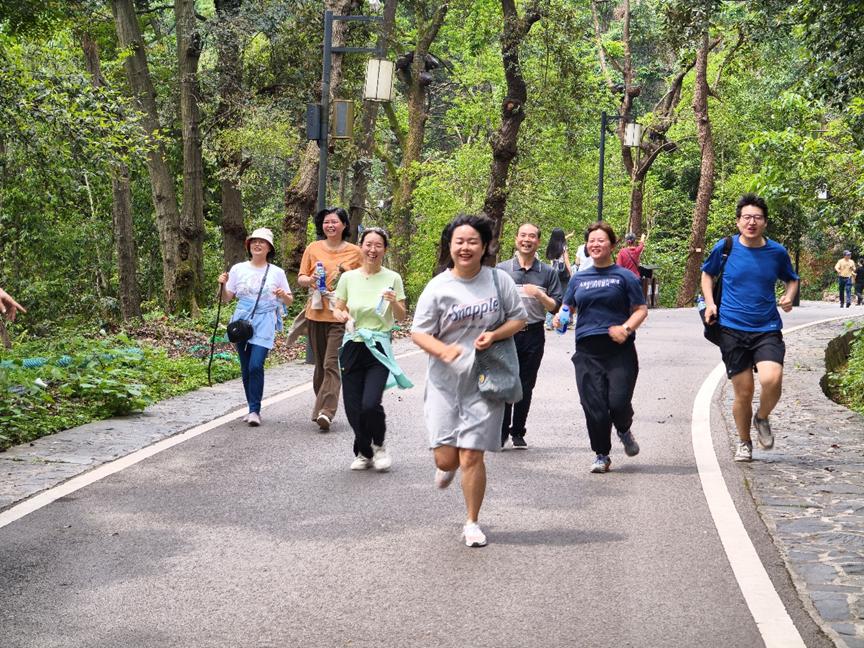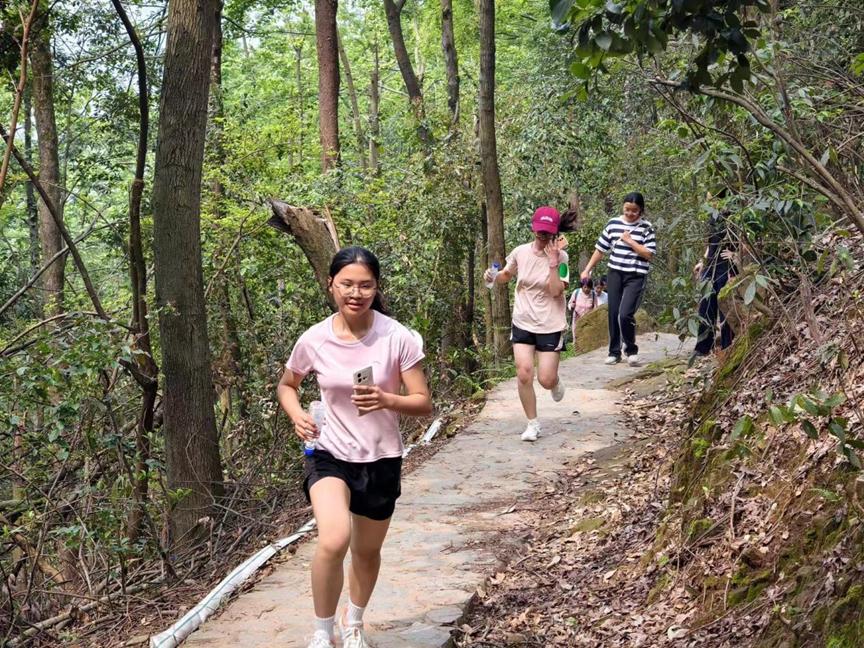 春和景明日,携众登山时。虽是四月末,长沙天气已渐渐变热,然而,这并未阻挡公司师生攀山登顶之热情。比赛开始前,老师与同学们一起进行了热身运动,跃动的身影展现出蓬勃的活力。随着赵晓霞书记宣布比赛正式开始,由师生共同组成的登山小队们纷纷踏入了征途。
