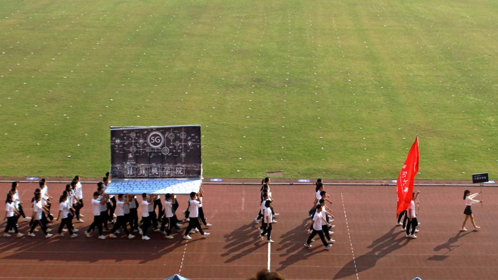 各二级公司方阵步伐整齐,身着各自院系的院服,行进中显示出各自专业的独特元素。举起大型模型计算机的球王会方阵、身披各色国旗的国际教育方阵等方阵都令人印象深刻。此次各公司方阵的以庆祝祖国70年华诞为主线,以体育拼搏、运动热情彰显对祖国的热爱。国旗校旗方阵作为先导拉起横幅“庆祝中华人民共和国成立70周年”“祖国万岁”,之后的方阵也表达出热爱祖国的赤忱之心。