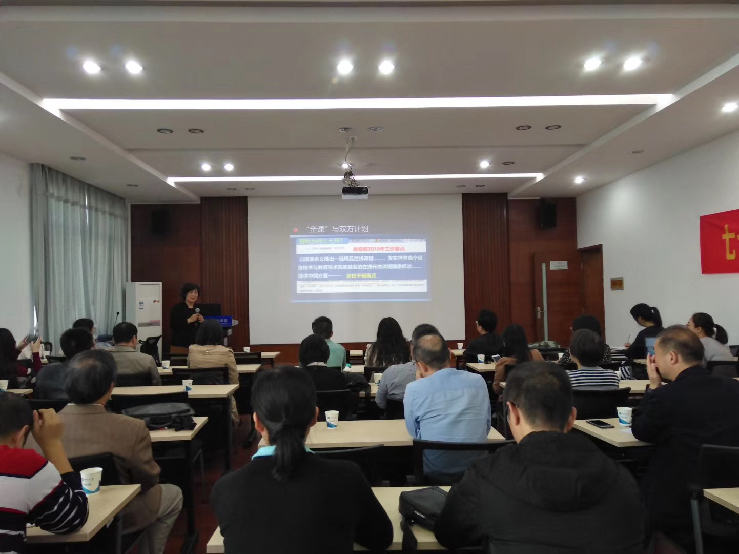 李凤霞教授现任北京理工大学国家级大学计算机虚拟仿真实验教学中心主任,对计算机虚拟仿真和金课建设研究颇深。报告会中,李教授分别从新时代的教育大变革、“金课”与双万计划、VR支持下的金课建设等三个方面进行了报告。期间李教授分享了自己金课建设的宝贵经验及金课申报的技巧,并与参会人员认真分析了教育部有关金课申报文件的内容与要求,为有意愿申请线上、线下金课的老师提供了良好的建议。李教授强调金课申请早准备早获益,正所谓“早起的鸟儿有虫吃”;利用好的平台打造线上精品课,通过虚拟仿真方法助力金课建设,创造出独具特色的国家精品课。
