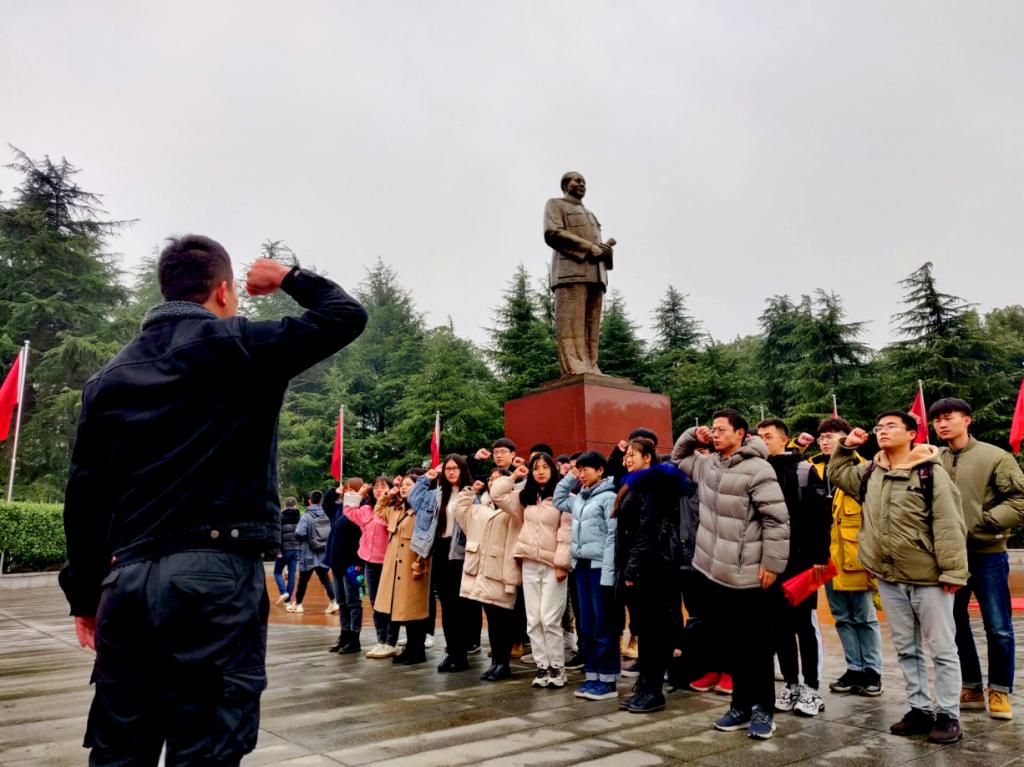 来到韶山,支部党员同志们首先前往毛主席铜像面前敬献花篮,在高大的毛泽东同志铜像前三鞠躬,表达了对中国人民伟大领袖的崇敬和追思。追思结束后,面对着鲜红的党旗,支部党员同志们举起右手紧握拳头,热情饱满地重温入党誓言。接着支部党员同志们先后参观了毛泽东同志纪念馆和毛泽东同志故居,了解了毛主席童年与少年时代,领略峥嵘岁月里的风华正茂。