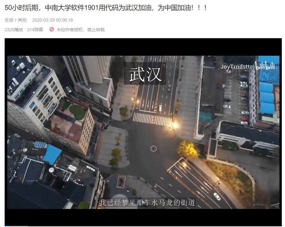 2月29日,球王会软件工程1901班制作的战“疫”特别视频上传网络后,引起强烈反响。视频中1901班全体同学通过编写祝福小程序的形式为武汉加油,视频上线后,引发众多网友点击、评论,截至发稿时,视频点击率已突破2300次,弹幕留言超过300条。