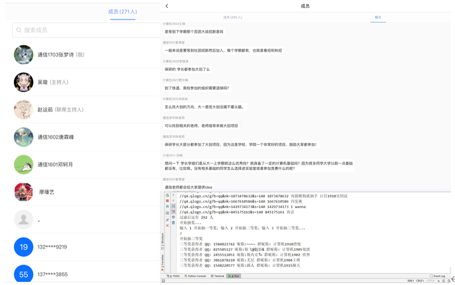在整场沙龙中的抽奖环节让人情绪高涨,不仅是因为奖品丰富,更是折服于肖涛学长只用了半天时间就做出来的抽奖程序,也更加直接的展示了通信工程专业不只是学习硬件,在软件方面也是可以精通的。
