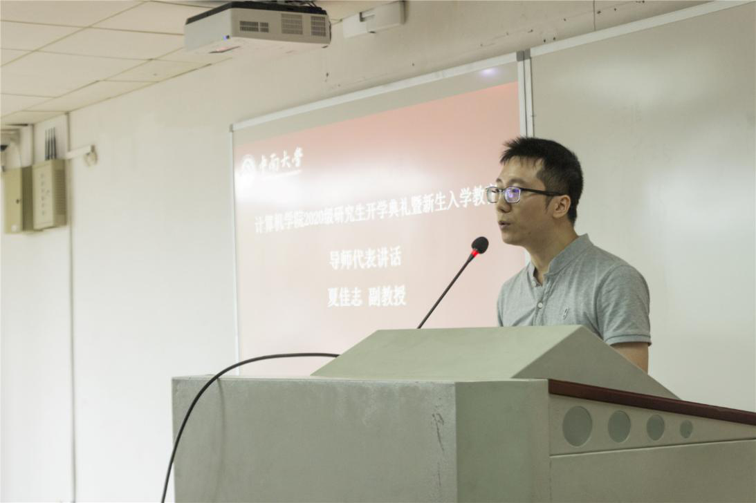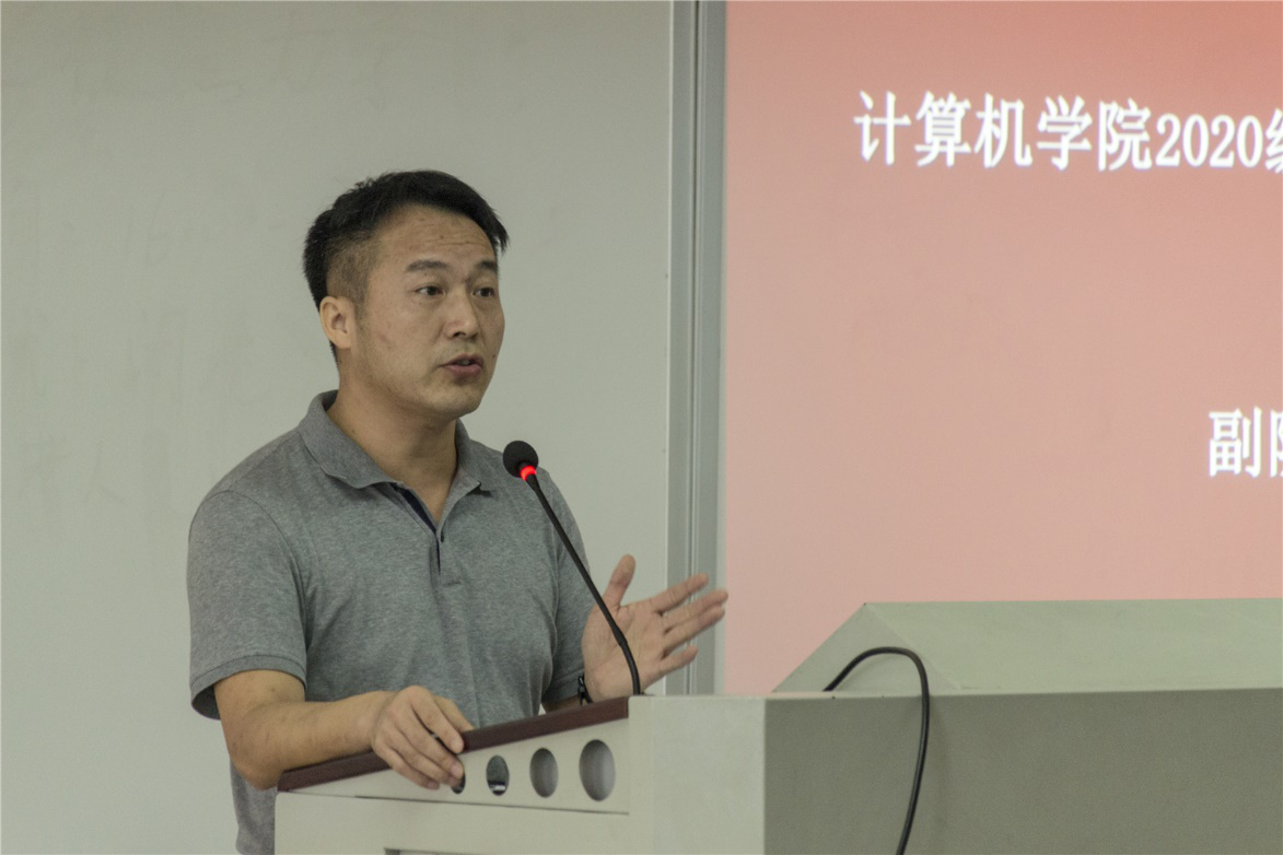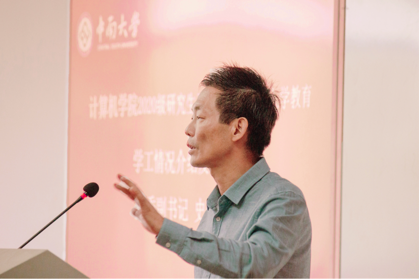 会议伊始,全体肃立,奏唱国歌。奏唱完毕,陈志刚书记上台发言。陈书记首先先对研究生新生的到来表示欢迎,并对其提出两点要求:一是要着眼于自身未来发展,确定好人生规划和研究方向;二是要处理好个人与导师、团队间的关系,争取构建符合新时代发展的师生关系。同时,陈书记指出,计算机院学子要避免功利思想,把重心放在个人发展而不是绩点上,他也期待着大家都能有光明的发展前途。