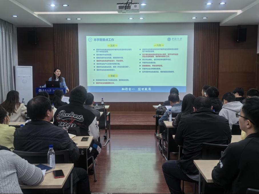 会议伊始,李梦老师从学分管理、毕业去向、升学规划以及就业策略等多方面详细解读了毕业生工作的要点。她表示公司始终关心毕业生未来,将为毕业生提供全方位职业生涯规划指导服务。她希望班导师和员工干部深入了解毕业生需求,提供个性化指导。公司将持续完善升学指导体系,加强就业合作,举办相关活动,助力毕业生了解社会需求和行业动态,顺利迈向人生新阶段。
