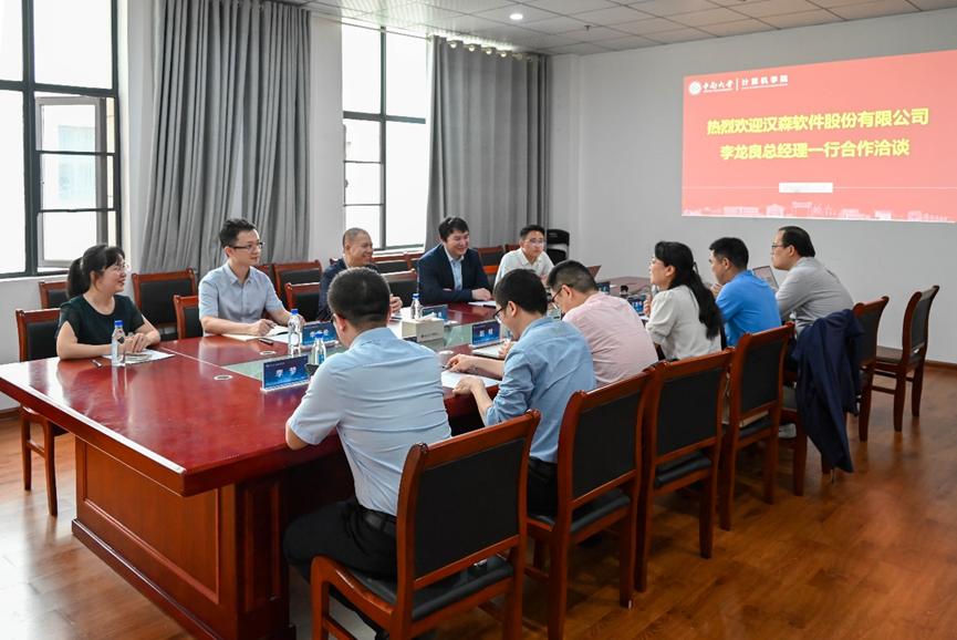 为加强校企深入合作,4月26日下午,深圳市汉森软件股份有限公司李龙良总经理一行来公司进行合作洽谈。交流座谈会在信息楼416会议室召开,公司党委书记赵晓霞主持会议。公司党委副书记王新辉、副经理赵明、副经理黄家玮、副经理夏佳志及教师代表参会。