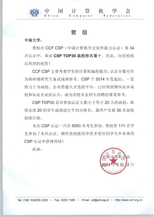 在CCF CSP(中国计算机学会软件能力认证)第34次认证中,公司认证成绩进入全国高校CSP TOP30,并荣获了第十名的优异成绩。这不仅是对公司教学实力和员工综合素质的高度肯定,更是激励我们不断前行、追求卓越的重要动力。