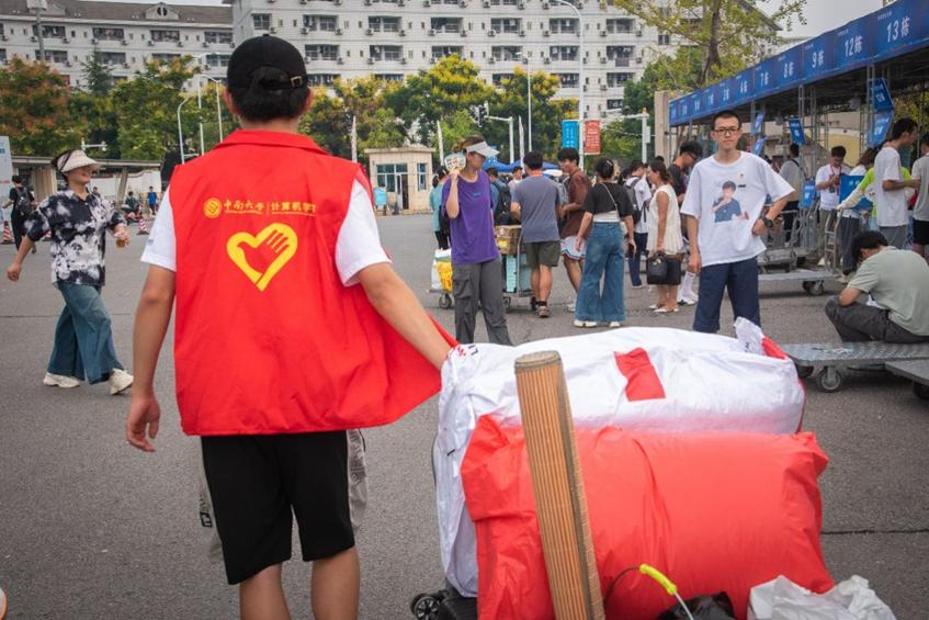 从清晨到黑夜,从新校区至南校区,志愿者们忙碌的身影穿梭在迎新点和宿舍楼间。他们搬运行李、登记注册、分发纪念品、耐心介绍公司公司情况,真挚热情地为往来的新生及家长提供帮助。烈日炎炎,骄阳似火,热浪没有阻拦他们的脚步,汗水映衬下,红色的志愿者服显得更加亮眼。