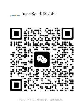 扫描下方openKylin-小K微信二维码添加好友,回复“麒麟杯”进入大赛交流群。
