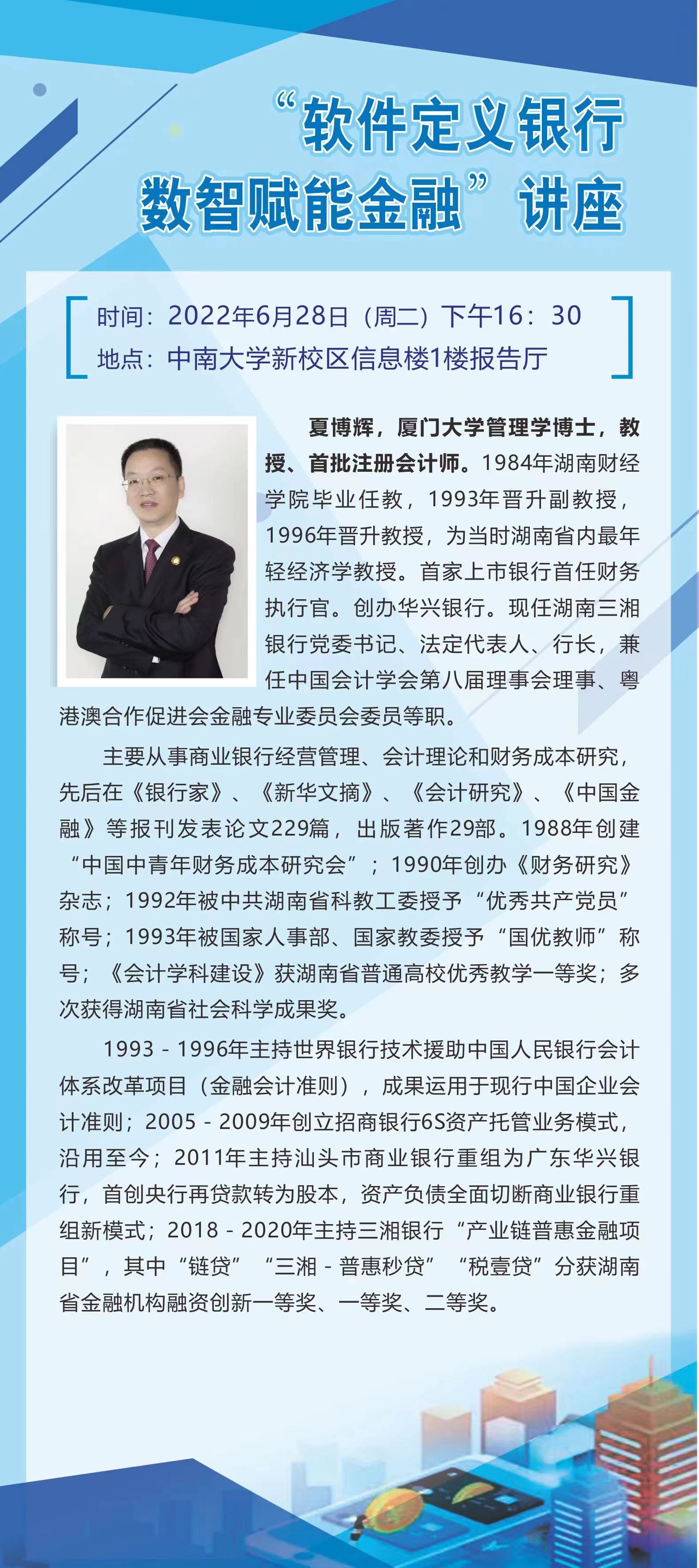 三湘银行党委书记、行长、厦门大学夏博辉教授学术报告
