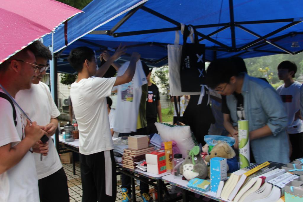 清晨,空气有些微微湿润,鸟鸣声阵阵。周日的校园里有些安静,活动开始后的前两个小时,经过升华广场的同学们并不多。各班已将班内义卖物品摆放整齐,迎接即将前来的顾客。