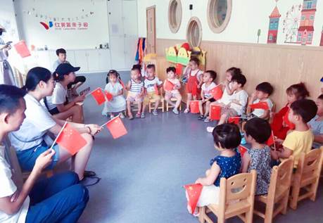 8月22日,实践团队前往位于酿溪镇的红黄蓝亲子园与小朋友们展开了亲切互动,进行红色文化的启蒙教育。