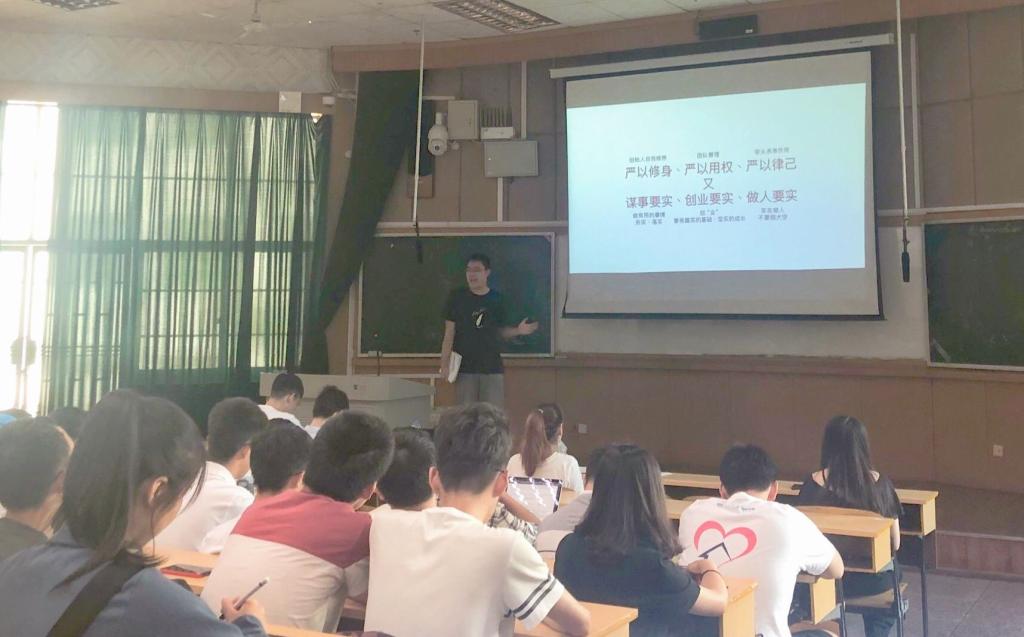 紧接着是优秀学长的经验传授。吕武谦学长重点提到在求知路上不要浪费课上的分分秒秒,认真对待每个学习任务,作息规律,明确目标,并为自己的目标奋力拼搏。同时也不要虚假学习,学习须得脚踏实地。孙家正学长从创新创业方面讲解了自己的见解与经验,他提出:“创业也要三严三实,讲求实践是检验真理的唯一标准”。希望软件学子根据诸位优秀前辈的指导,惜寸阴,严以修身,汲人之长以补己短,砥砺前行。