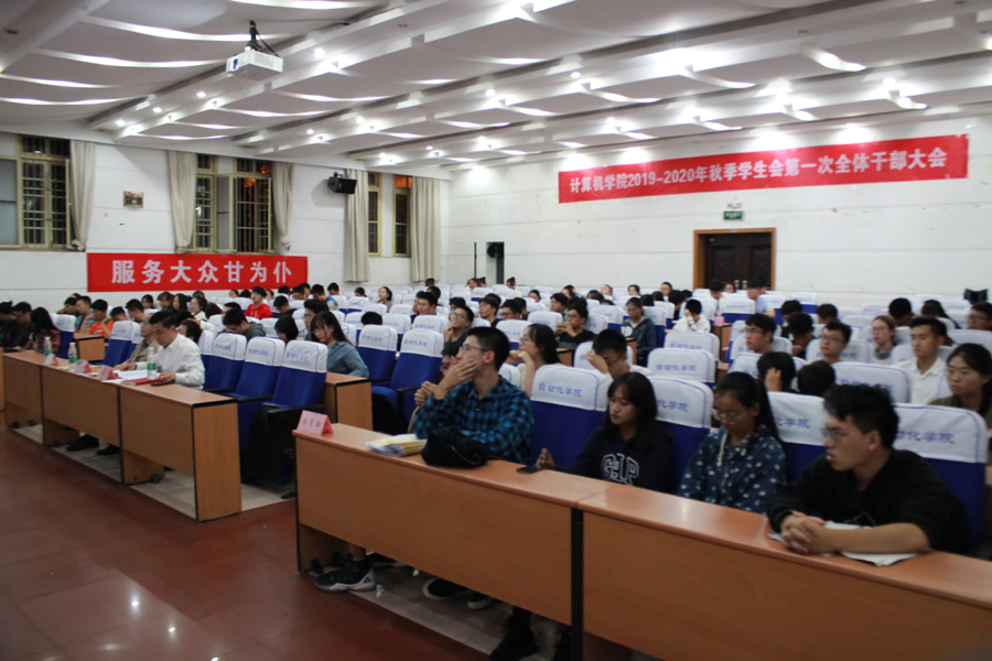 在大家观看完军训队列操表演的视频后,张艳武老师发表讲话。他从军训“九一八”摆字、队列操表演谈起,讲解计算机院学子所需具备的凝聚力。他向员工会干事提出三点要求:第一,学会学习,学会担当。第二,明确职责,不辱使命。第三,团结协作,无私奉献。最后他告诫同学们,员工工作始于激情,终于责任,希望大家要不忘初心,牢记使命。