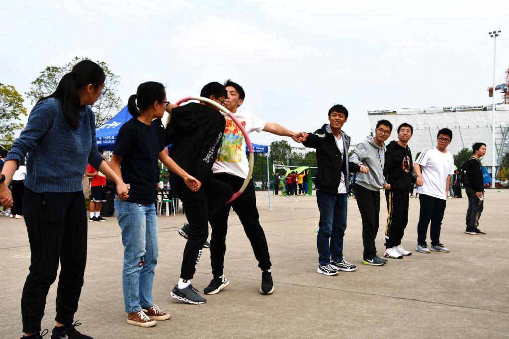 项目“同舟共济”分外吸睛,各班同学们默契配合,同心协力,喊着口号一步一步地向前迈进。史书记更是和同学们一起参加了这个项目,带动了整场运动会的气氛。“车轮滚滚”更是体现了团队站位协调与团队精神。 “众志成城”和“心心相印”等运动项目既考验身体协调能力,也是智力体力的综合大比拼。乒乓球接力赛因为当日有风的天气因素,颇有难度,对选手们的平衡能力是极大挑战。最后的项目“纤夫的爱”,将整个运动会推向了高潮。