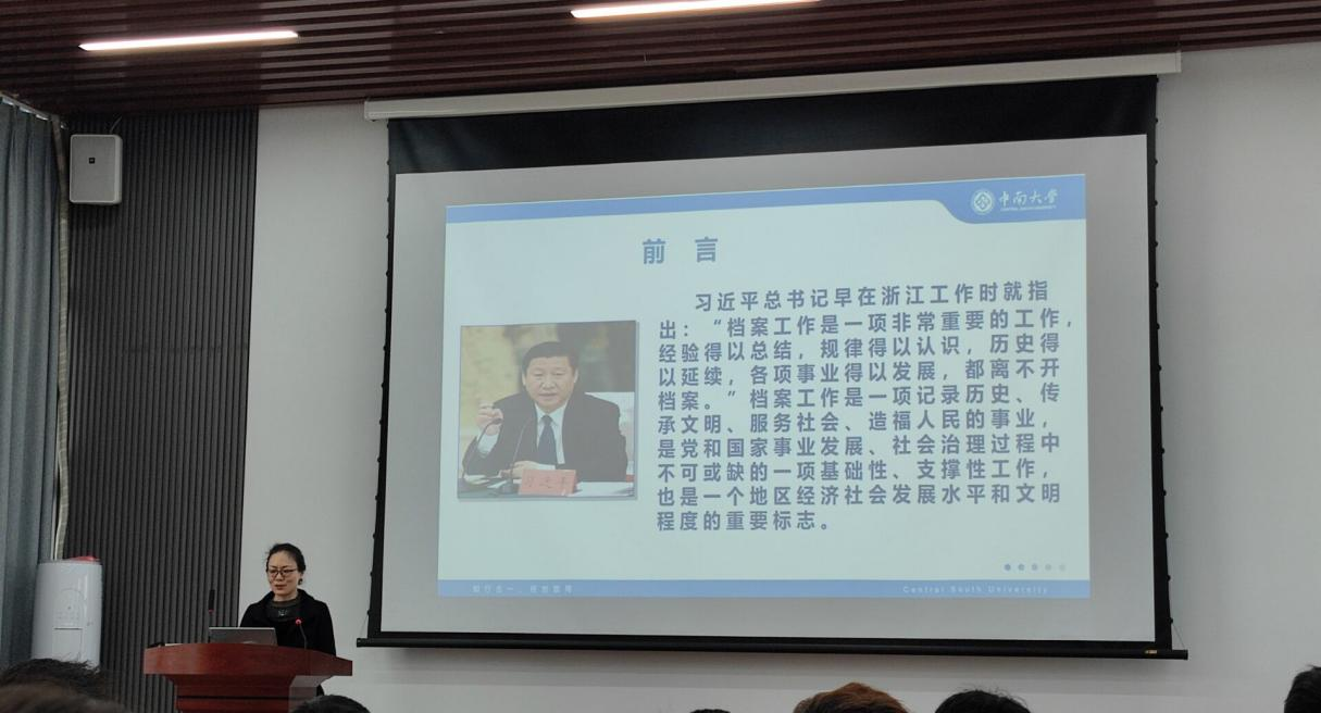 周馆长从档案的发展历程引入,带员工走进档案,用轻松的话语营造了一个愉悦的氛围,细致地讲解了档案的准确定义、相关法律法规以及档案的重要性。接着,周馆长讲述毕业生档案,主要讲解了员工档案的概述、现状、作用及管理情况。随后,周馆长提到了档案的利用与服务,通过具体的实例,教会员工如何利用档案为自己服务以及具体如何查阅档案,同学们受益匪浅。讲座最后,周馆长以习近平总书记在带领新一届中央政治局常委瞻仰中共一大会址和嘉兴南湖红船时的话“我们是为了不忘初心、坚持真理而来,我们的初心、真理就蕴含在这些档案之中”,引导员工骨干也要不忘初心,牢记使命,努力为同学们服务,坚决把好档案这一关。