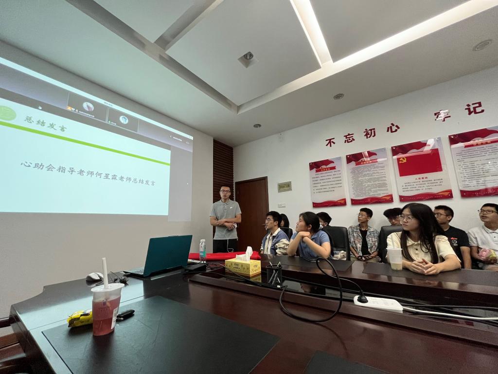 之后,由指导老师何星霖对心助会未来工作提出期望。何星霖老师提出工作中应给予同学们原则以内的自由度,鼓励干事们大胆创新,敢于想象,敢于实践。