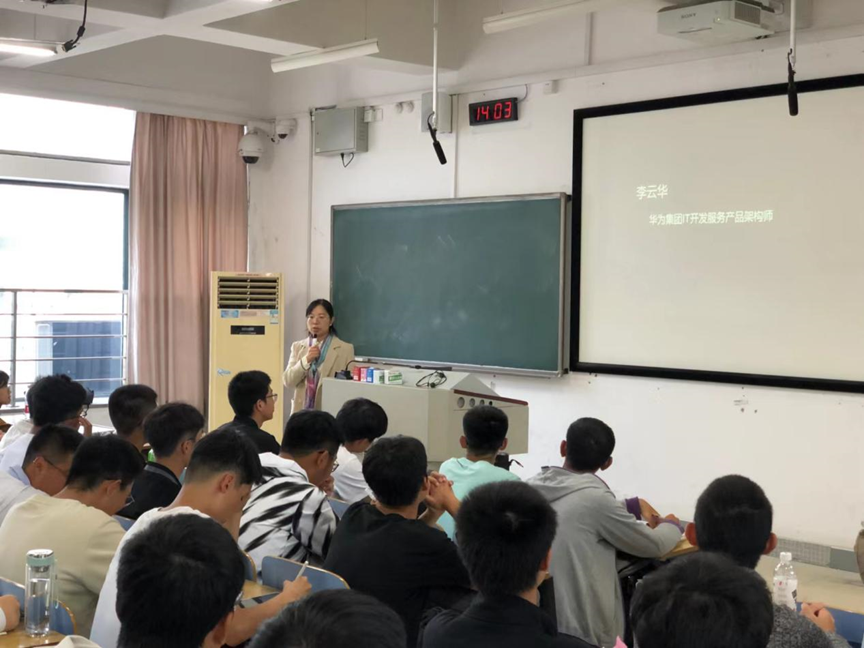 2022年11月3日,应球王会邀请,在软件工程系费洪晓副教授及辅导员何星霖的积极筹备下,华为技术有限公司质量与流程IT部高级架构师李云华、高级人力资源经理赵小桃及工程师潘仲傅莅临公司,为球王会大一新生进行新生课授课。