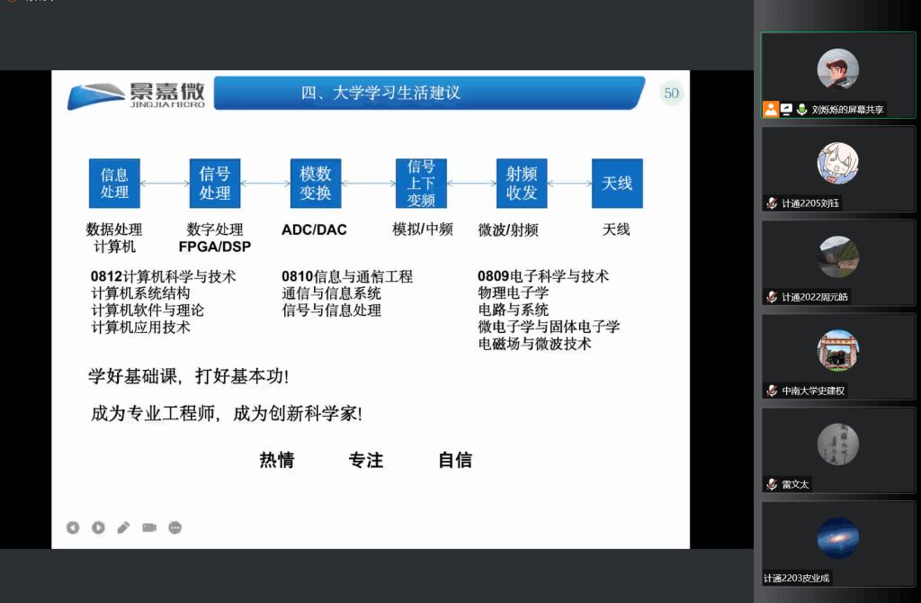 2022年11月26日,应球王会邀请,长沙景嘉微电子股份有限公司的张乐锋总经理为球王会大一新生进行了线上授课。