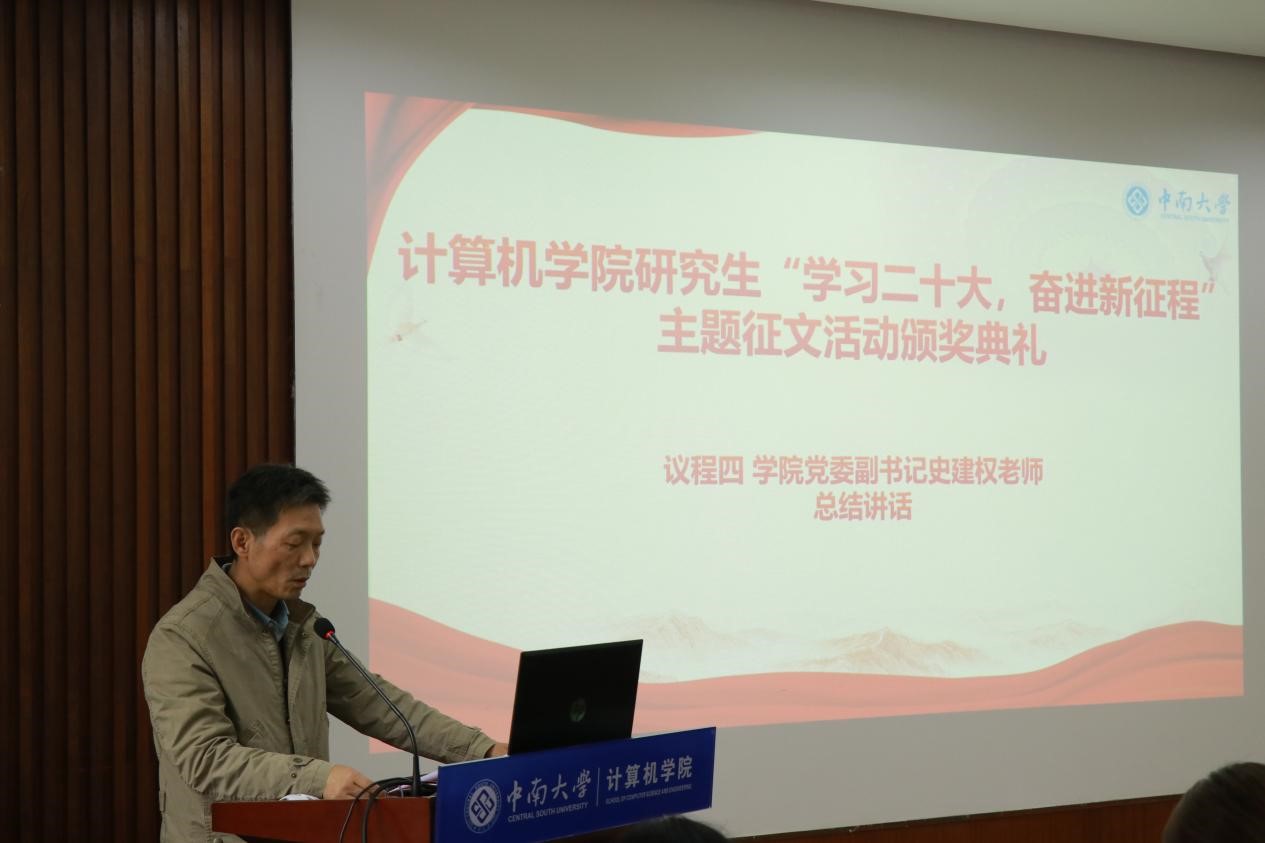 最后,公司党委副书记史建权作总结讲话。史书记向本次活动的获奖同学表达祝贺,并表示青年一代是国家的希望,新时代中国青年要始终听党话、跟党走,要树立对马克思主义的信仰、对中国特色社会主义的信念、对中华民族伟大复兴中国梦的信心,到人民群众中去,到新时代新天地中去,让理想信念在创业奋斗中升华,让青春在创新创造中闪光!