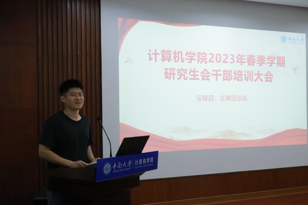 大会第四项,主席团曹泽榆同学进行最后总结。曹泽榆同学对近期工作进行了详细讲评,表扬了张越棋、朱鹏阳、马凌尧、王艺瑾等同学的工作事迹,就研究生会工作中存在的问题以及具体的工作方法和技巧与同学们进行探讨分享,最后对研究生会的制度提出了改进建议。