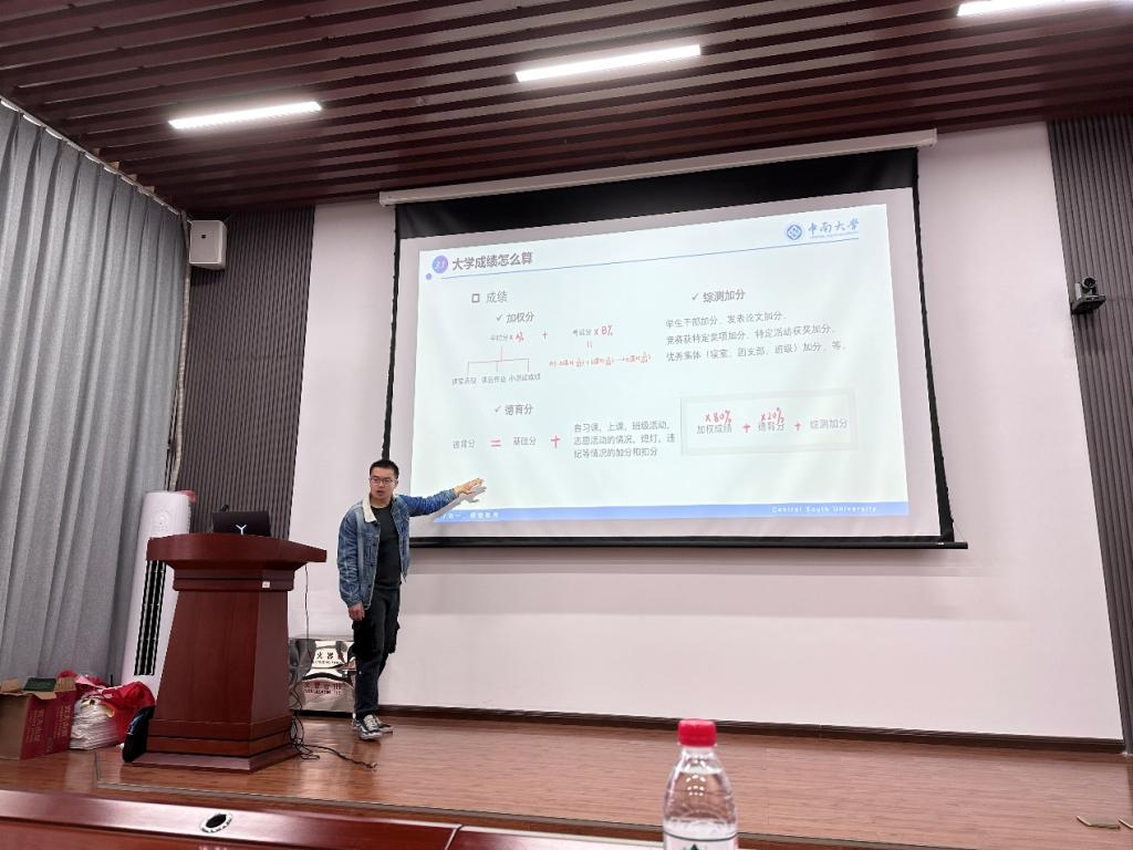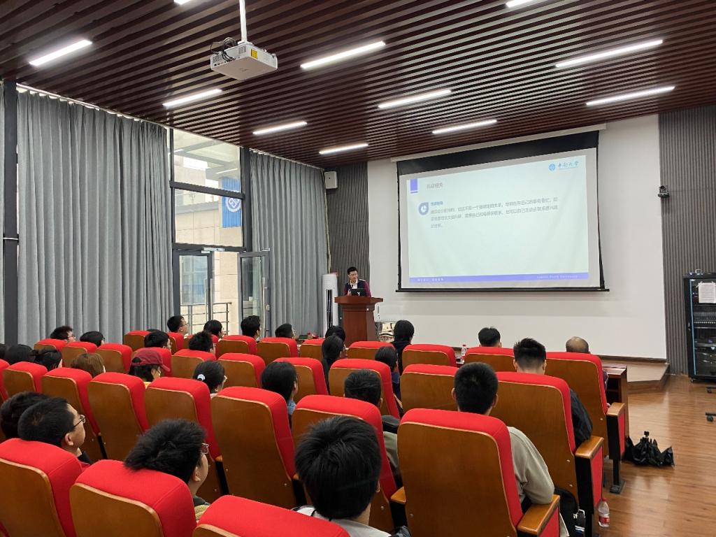 紧接着,何星霖老师对通信专业往届保研、就业等情况做了详细的介绍。在此基础上,何老师着重强调了学风建设、学业规划以及在校期间的安全与纪律问题,勉励同学们不要在老员工活中留下遗憾,做有礼貌、高情商、有活力的“高质量老员工”。