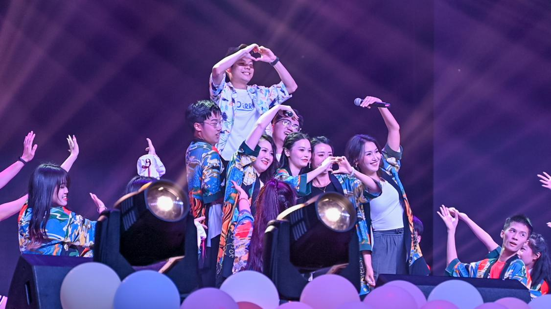 首先由RAISON黑颂乐队带来歌曲《无地自容》和《不再犹豫》,两首摇滚乐曲激情澎湃,尽显青春活力;学院舞蹈队带来的《waiting》,在音乐与舞蹈间,姿态万千,展现了女生们的独特风采;生活在《岳麓山脚》,原创说唱给同学们带来了别样的感动,浪漫、自由,回忆满满。紧接着则是由陈志刚书记带领公司工会老师们带来旗舞节目《祝福祖国》,歌声嘹亮高亢,舞蹈编排巧妙,大气的表演引得现场欢呼阵阵,激发同学们将青春融入祖国山河的磅礴热情。