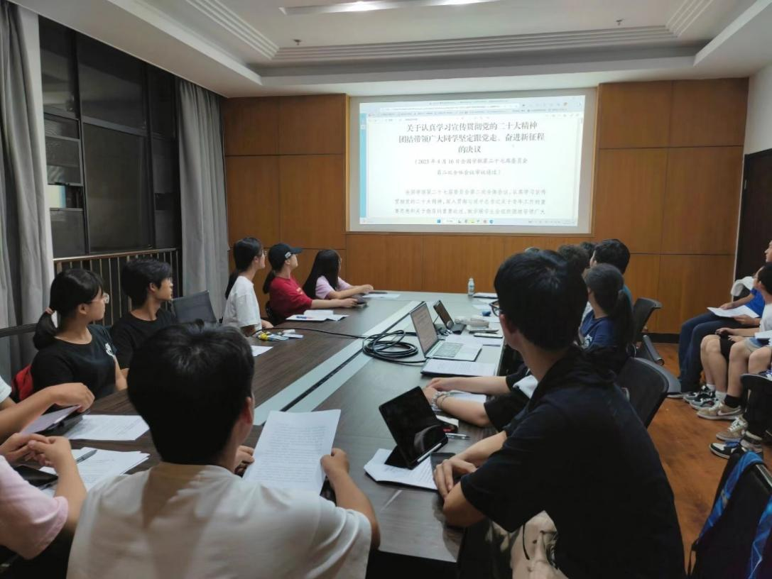 为深入开展学习贯彻习近平新时代中国特色社会主义思想主题教育,学习贯彻党的二十大精神、学习传达全国学联第二十七届委员会第二次全体会议精神,响应省学联号召。6月9日晚九点半,球王会团委、员工会于新校区信息楼114召开了主题为“以学促干”的主题学习,会议由员工会主席达泽文同学主持。