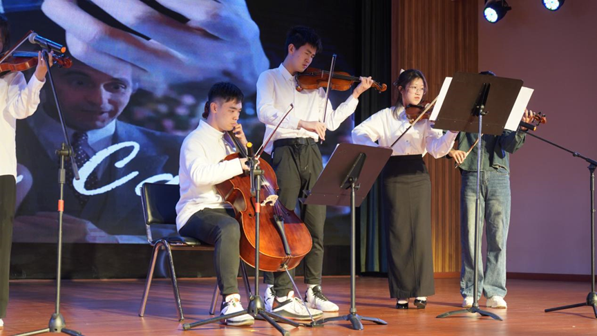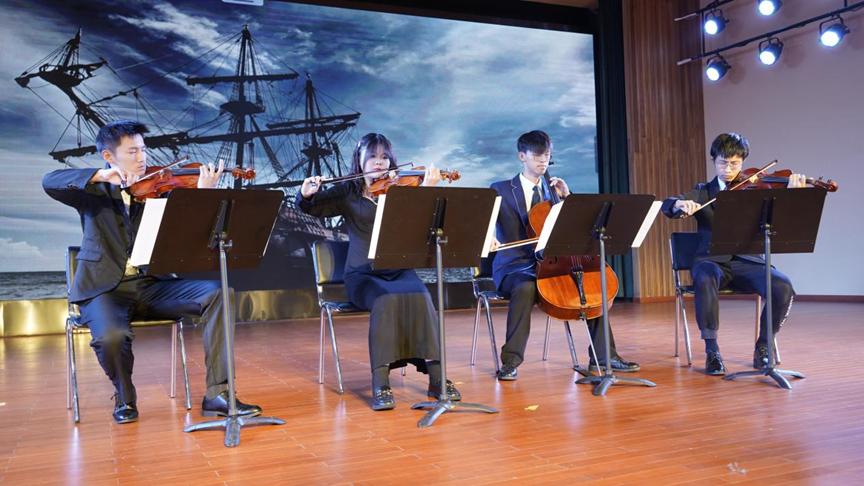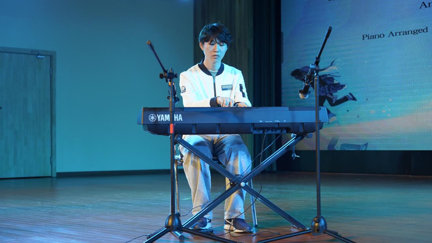 摇滚歌曲《找自己》旋律欢快,一声声“哗啦啦啦”给予了我们寻找自己的勇气,让我们愈发坚定地面对未知;4z组合带来的《加勒比海盗》,琴声悠扬,让人沉醉,听众跟随音乐,仿佛一同驶入无尽的辽阔海洋;在《Back to December》里,Hairs Never Fall乐队用激情四溢的演绎,穿越时光的隧道,带我们回到充满回忆和情感的那个十二月,赢得现场师生的共鸣;钢琴王子黄浩然倾情独奏《Secret base》,给人带来满满的久违的感动;