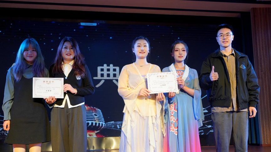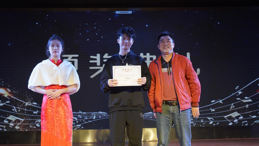 进入颁奖环节。黄文杰《身骑白马》以其出色的唱腔与独特的感染力摘得桂冠,公司党委副书记王新辉为他颁奖并合影留念。许越、李星《Letting go》与简若晴、石惠元、刘瑾瑜、杜晨洁的舞蹈串烧赢得二等奖。王晴《永不失联的爱》、孔禹程和黄倍嘉《找自己》与弦乐合奏《一步之遥》斩获三等奖。贾临旭、石墨潇《天外来物》获得最佳人气奖, 4z组合《加勒比海盗》与Hairs Never Fall乐队《Back to December》获得最佳组织奖。公司团委书记陈司宇老师,团委副书记袁熠、刘烁烁老师,张钦栩、张诗曼同学分别为获得最佳人气奖、二等奖、三等奖以及最佳组织奖的同学颁奖并合影留念。最后,全体参赛选手、评委老师及工作人员一同上台合影,定格这盛大而美好的一刻。
