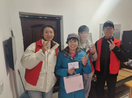 下午3时50分,志愿者们分组前往各个宿舍楼。虽正值严寒时节,可志愿者们的心却暖洋洋的。他们脸上洋溢着热情的笑容,敲开值班室的门。“宿管老师好!”“同学们好!”在一片亲切的问候声中,志愿者们递上了精心制作的贺卡——宿管读着同学们用心写下的一字一句,满眼都是感动。随后,志愿者又送上了提前准备好的热气腾腾的豆浆、护手霜和暖手袋等礼品。