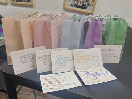 下午3时30分,志愿者于各校区集合,为接下来的志愿活动做准备,将选购的小礼物仔细分装好,在贺卡上写下感恩的话语和真挚的祝福。“亲爱的宿管阿姨,”一位志愿者这样写道,“感谢您的辛苦付出,祝您身体健康、心想事成!”宿管阿姨的细心与温暖在我们心中埋下了一颗爱的种子,如今我们也想将这份温暖送回宿管身上。