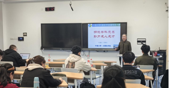 随后,来自“随便起名队”的蒋仲尧学长总结了自己团队的参赛经历,他着重分析了初次参赛过程中可能出现的困难,并给出合理建议,令同学们深受启发。