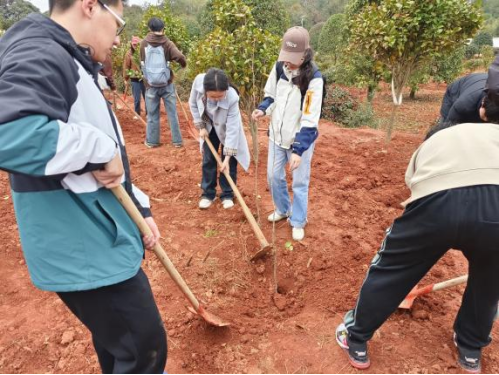 早上八点,同志们准时出发,有序乘车前往杉木园。在当地工作人员的引导下,同志们领取树苗前往指定地点植树,向工作人员学习了植树要领后,四人一组开始植树。过程中,同志们通过植树活动亲近自然,体会到劳动和保护环境的快乐。