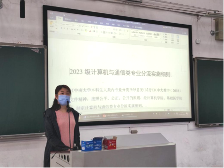 接着,戚主任对计算机大类专业分流政策进行了详细的解读,说明了相关的注意事项,并向同学们详细地介绍了相关实施细则。