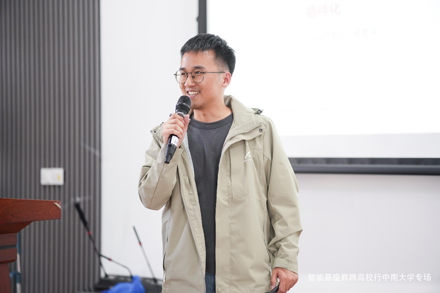 昇腾AI开发者生态总监李基盛以“携手开发者,共创数智未来”为题,为专家分享环节拉开序幕。他表示,开发者是促进产业繁荣的重要推力,昇腾AI始终重视开发者工作,积极参与开发者生态建设,从技术、运营等方面进行生态协同,帮助开发者加速产品应用创新。此外,昇腾AI还为开发者提供丰富多样的开发者活动,并通过体系化成长计划及权益激励为开发者赋能,与开发者携手并进。生动精彩的演讲激发了同学们投身行业的信心。