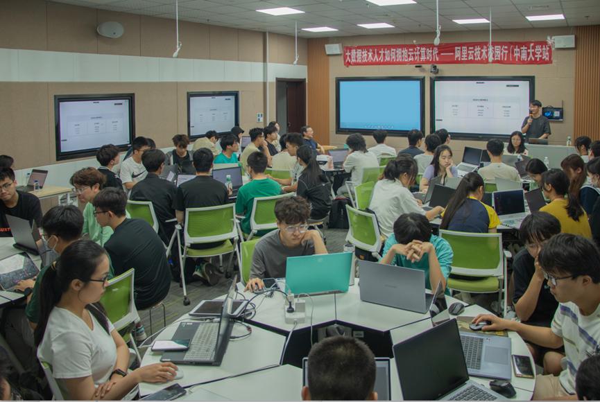 接着,阿里云技术专家刘洋老师、梅鸿辉老师和忻程烨老师为线上和线下参与的同学们开展了实践教学。刘洋老师以搭建云上服务器为案例,带领同学们部署一个属于自己的网站。梅鸿辉老师和忻程烨老师为同学们介绍数据可视分析工具DataV产品内容和实践案例。三位老师在实践教学中为同学们答疑解惑。