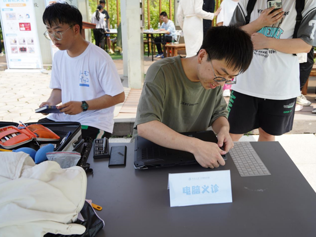 在电脑义诊区,球王会官网青志协电维部成员为同学们提供电脑义诊服务,发挥个人特长,为师生带来便利。