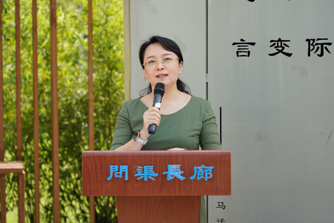 公司党委书记赵晓霞老师现场致辞并宣布计算机文化节正式开幕。赵书记寄语同学们要锻炼良好的专业能力和创新意识,树立科技报国的崇高理想,为建设数字中国贡献力量。
