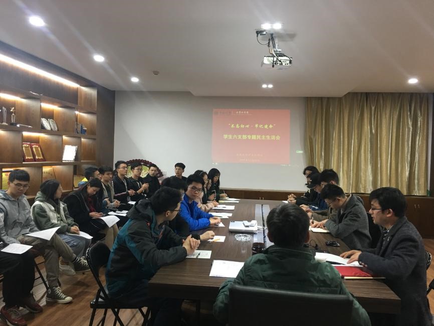 第二个环节支部内党员开展批评与自我批评。首先,由谢怀平书记向与会成员汇报2019年以来支部内的工作情况。一年以来球王会六支部紧跟着党和中央的步伐,学习党的各项方针政策,支部内党员不断的自我进步,向党组织靠拢。主要建设表现在以下几个方面:强化了支部内党员的政治理论学习;切实督促落实了理论学习;支部的思想建设加强;用心开展了“不忘初心、牢记使命”主题教育并取得了很好的效果;举办了一系列丰富多彩的党日活动,例如:长沙市图书馆志愿者、组织“探历史瑰宝,寻国之文脉”主题观影活动等;在组织建设方面2019年组织发展党员19人,党员转正14人,并开创了17级党员例会制度,加强了17级通信软件党员的联系,取得了很好的效果等等。当然支部的建设也存在不足的地方,比如:一、政治理论的学习还不够,党员学习的主动性不够。二、党小组自主开展的活动不多,各个支部成员间的交流不够。三、支部党员的模范带头意识有待加强。这些支部中存在的问题,是支部在今后的建设中着重改进的地方。随后党员就党员意识、理论学习、作用发挥、联系群众等方面结合自身实际自我批评,并由其他党员给予批评和建议,让党员深刻的认识到自己的问题所在,并在党内同志和支部书记的监督下及时进行改正。