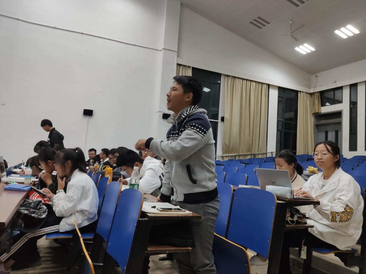 交流会上,首先由学习委员对第九周的学习情况、学业事务以及班级学风进行了总结和交流,经过与同学们的讨论过后,大家一致认为班级本周的学习情况良好,应该继续保持。之后的答疑互助环节,同学们就C++实验上与高等数学上的难点进行了讨论,经过部分同学的上台讲解后,大家一起攻克了学业难题,实现了共同进步。交流会最后,由思修学习1、2小组的组长向大家分享了参加小组展示活动的经验,并讲解了利用球王会官网图书馆官网搜索资料的方法。