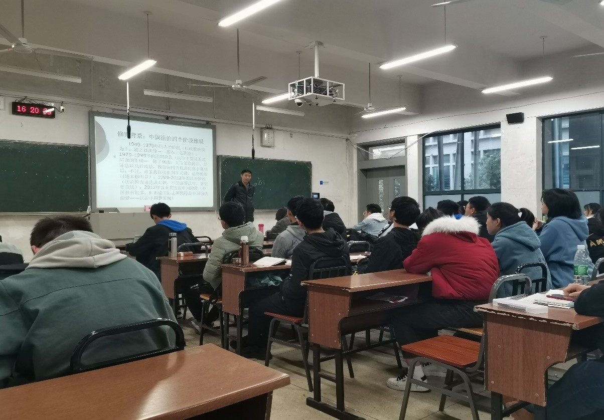 紧接着,在廖璠艺老师的介绍下,敖双红教授开始为同学们进行相关知识的传授。敖双红教授以丰富的史实知识和幽默的语言风格激起了同学们的求知欲望,同学们在欢声笑语中既了解到中国宪法的发展历程,又知晓了宪法于一个国家的重要性,加深了同学们对国家的根本大法——宪法的认识。
