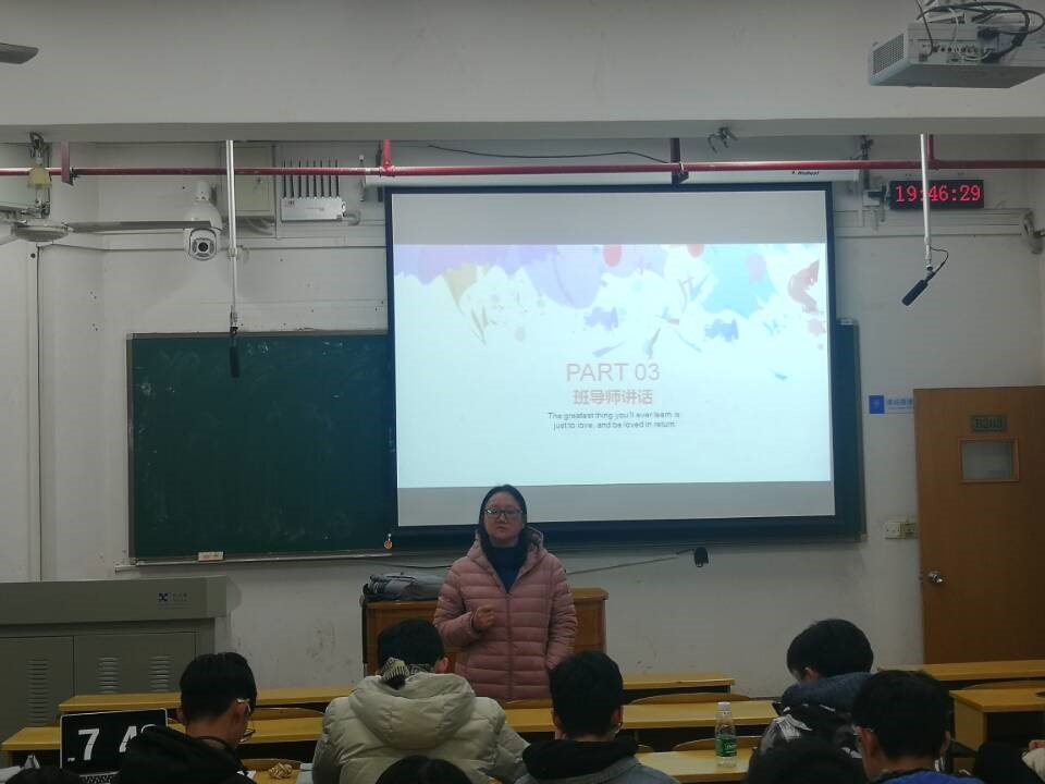 王睿卿老师就公司的学习情况与班级的学习情况进行了分析与对比,向大家分享了自己对于保研、出国与选择专业方向上的一些经验,并希望大家可以自主学习,严格执行自习打卡的要求。