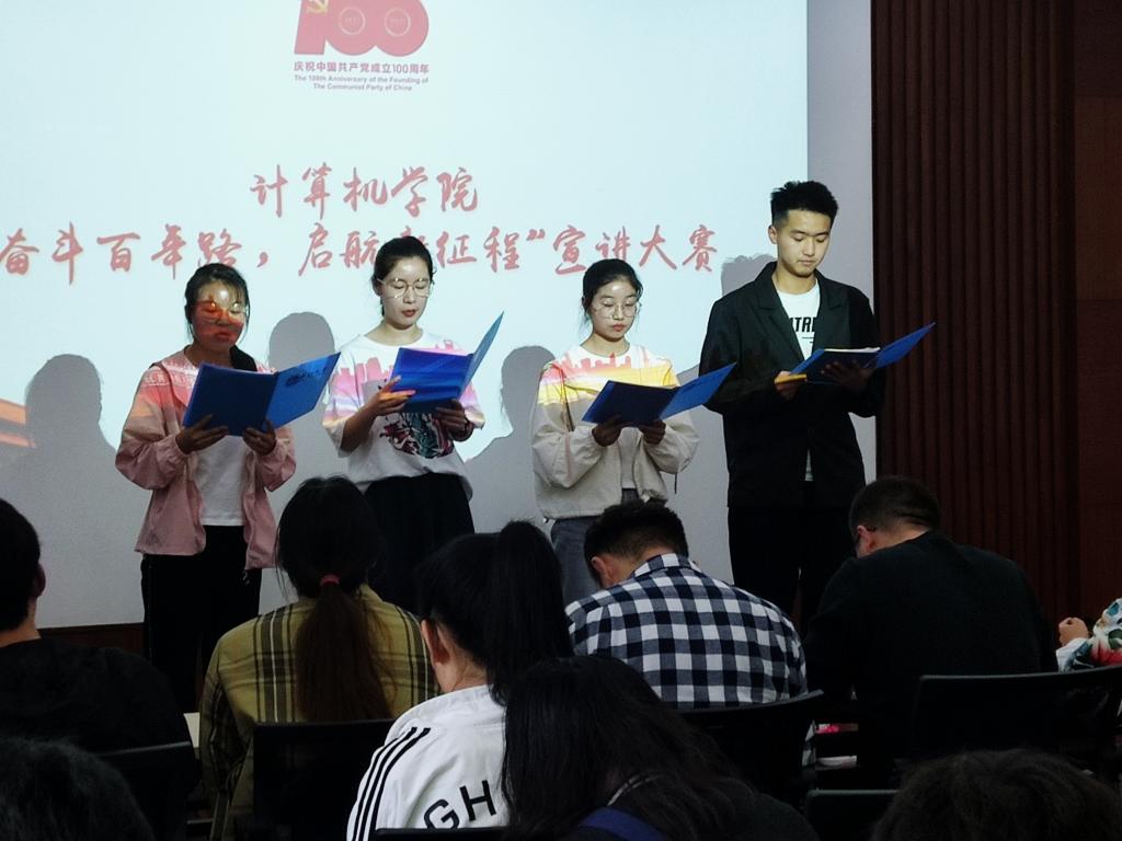 比赛过程中,9组选手依次上台,为大家带来了一场视听盛宴。现场座无虚席,选手们用演讲、朗诵等形式,回顾党的光辉历程,抒发对党的敬仰之情。