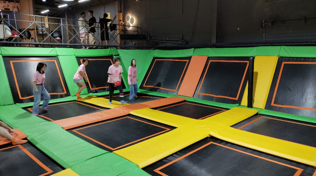 然后就是蹦床上和海绵池里面的两个游戏,“蹦床躲避球”和“踏上征程”,相比前两个游戏,更加具有趣味性和竞技性,增加了不少的运动量。